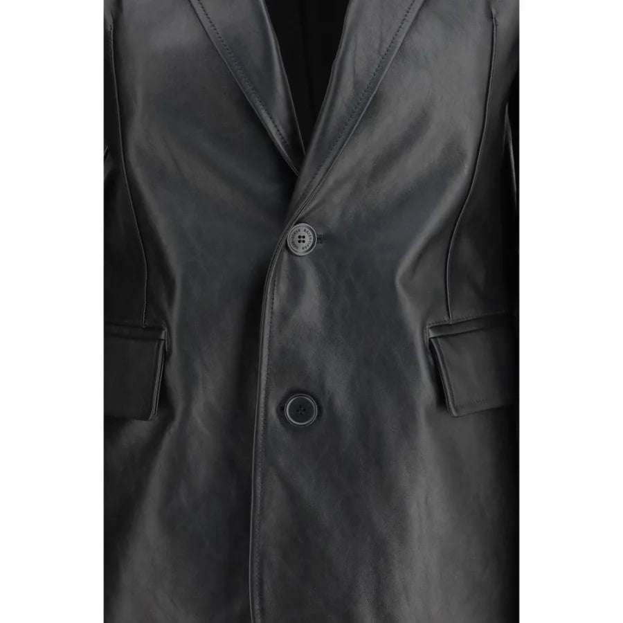 The standard Jacket by Balenciaga delivers a refined take on modern tailoring with a clean, contemporary aesthetic. Designed as a single-breasted style with button fastening, it is distinguished by classic leather lapels, adding a bold contrast and a signature edge. The streamlined construction is completed by two front pockets, balancing functionality with understated elegance. A statement piece that embodies Balenciaga’s modern tailoring attitude.