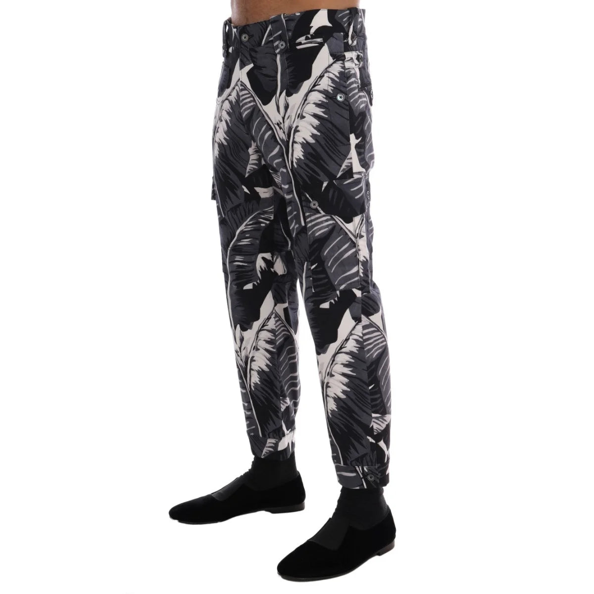 Dolce & Gabbana Gray Banana Leaf Cotton Pants