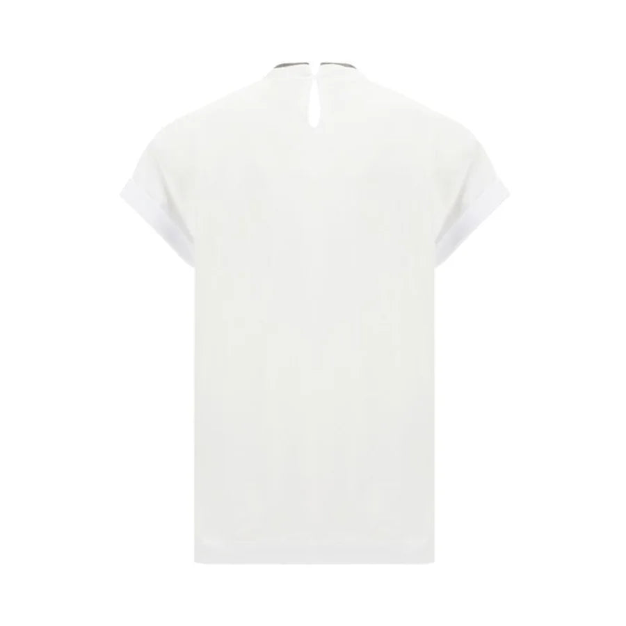 The cotton T-shirt by Brunello Cucinelli features a clean, understated silhouette elevated by the brand’s iconic detailing. The neckline is embellished with contrasting monili, while a back keyhole with button closure adds a refined touch. Finished with a regular fit, it balances comfort and sophisticated simplicity.
