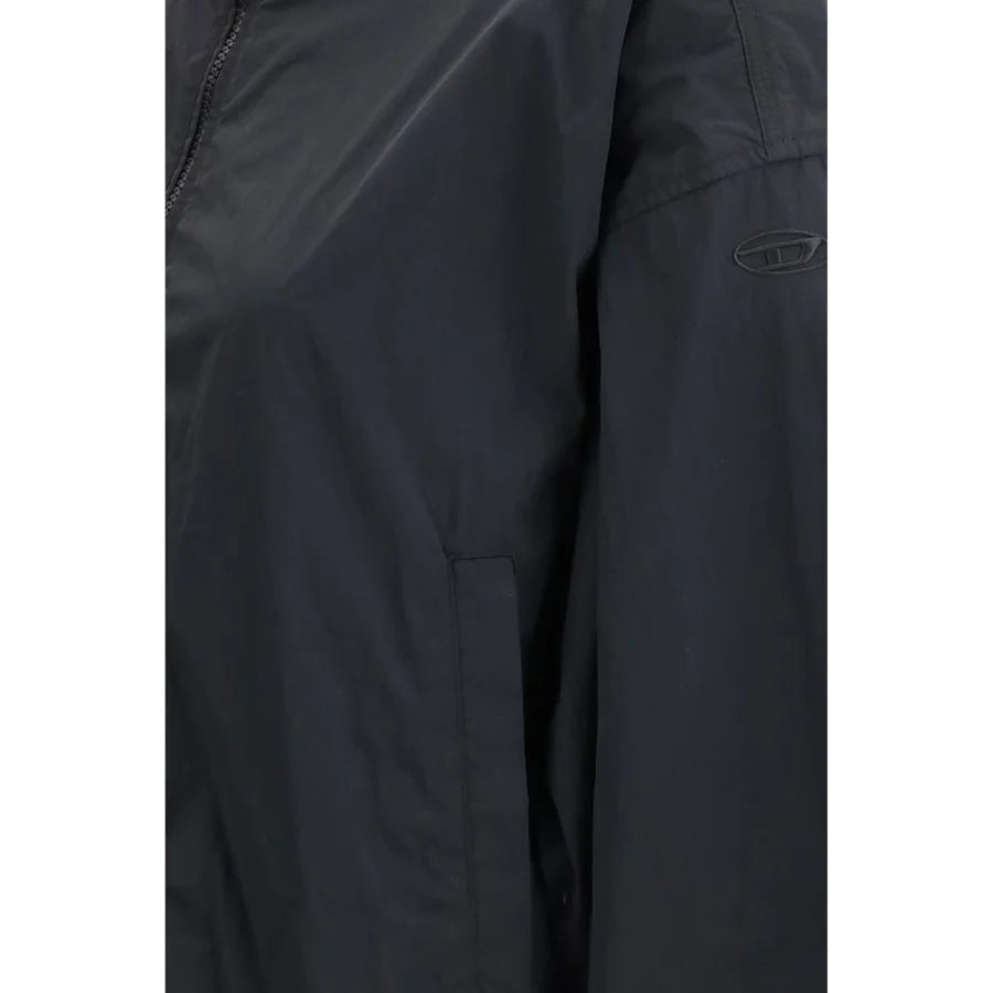 The G-leam Windbreaker by Diesel expresses a functional and modern attitude through a compact recycled nylon construction with a wrinkled texture. The loose silhouette and high neck create a protective yet relaxed shape, while the zip fastening and pockets ensure everyday practicality. Drawstring-adjustable cuffs and hem refine the fit, finished with the tonal Oval D logo embroidered on the sleeve as a subtle brand signature.