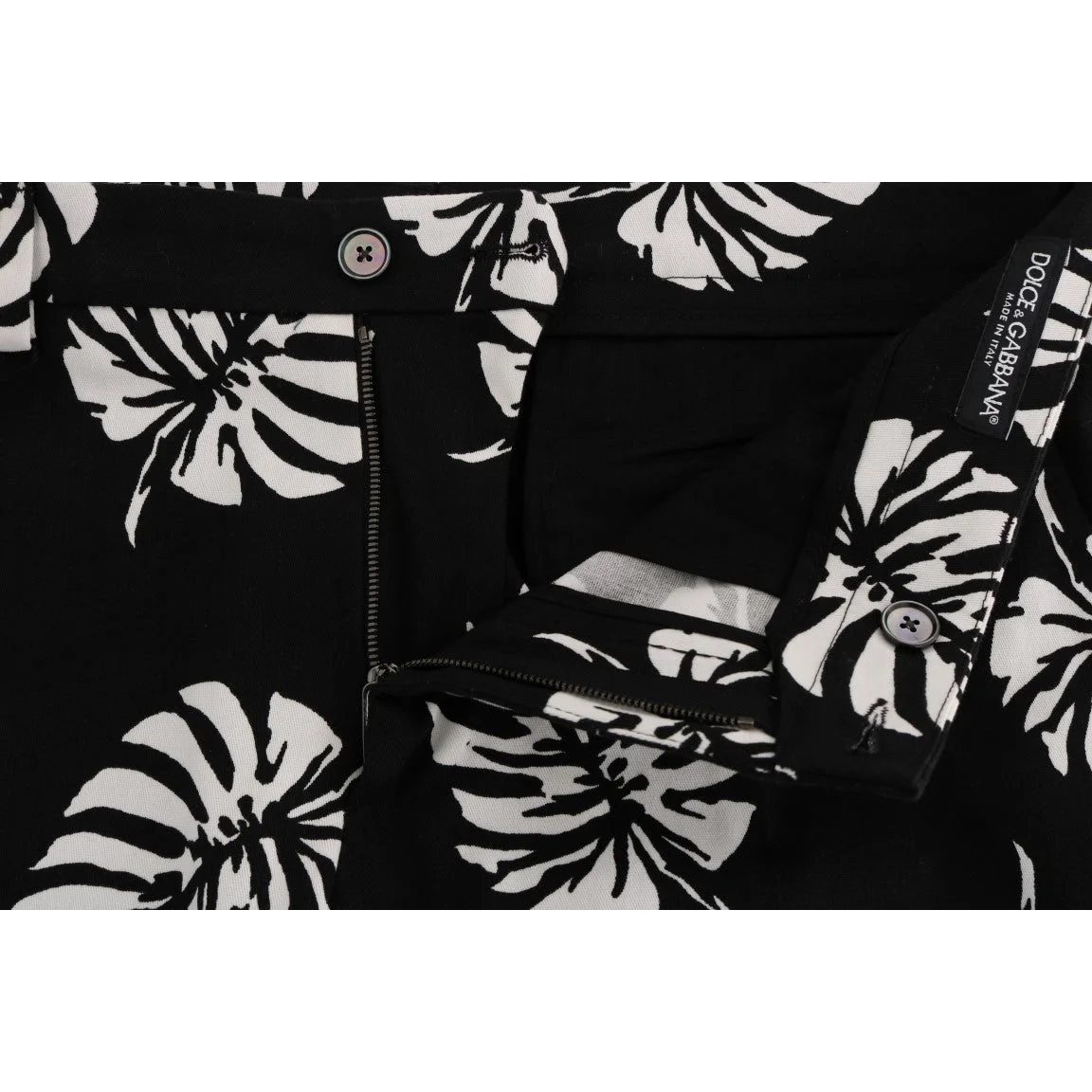 Dolce & Gabbana White Black Leaf Cotton Stretch Slim Pants