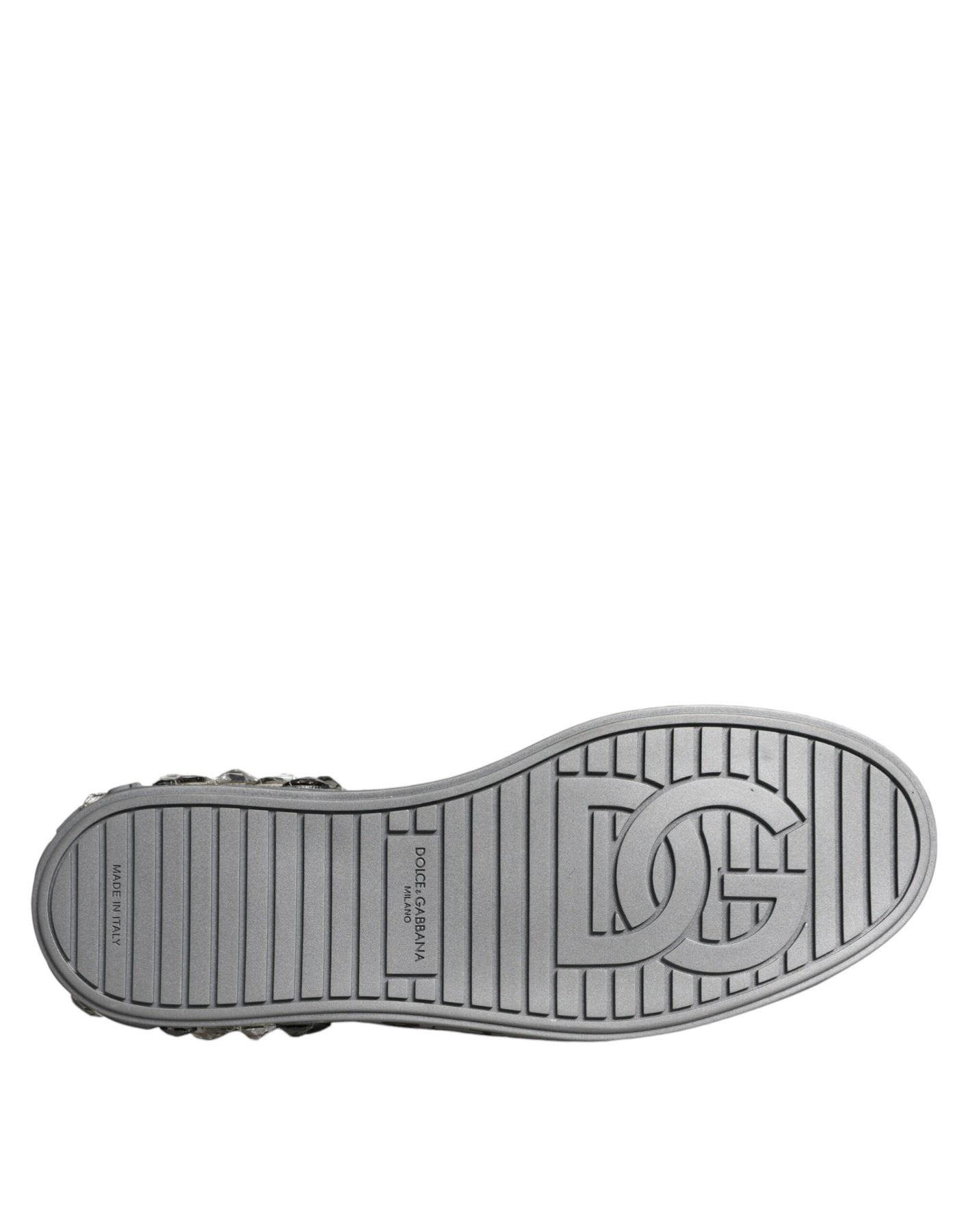 Dolce & Gabbana White Silver Crystal Logo Portofino Sneakers Shoes