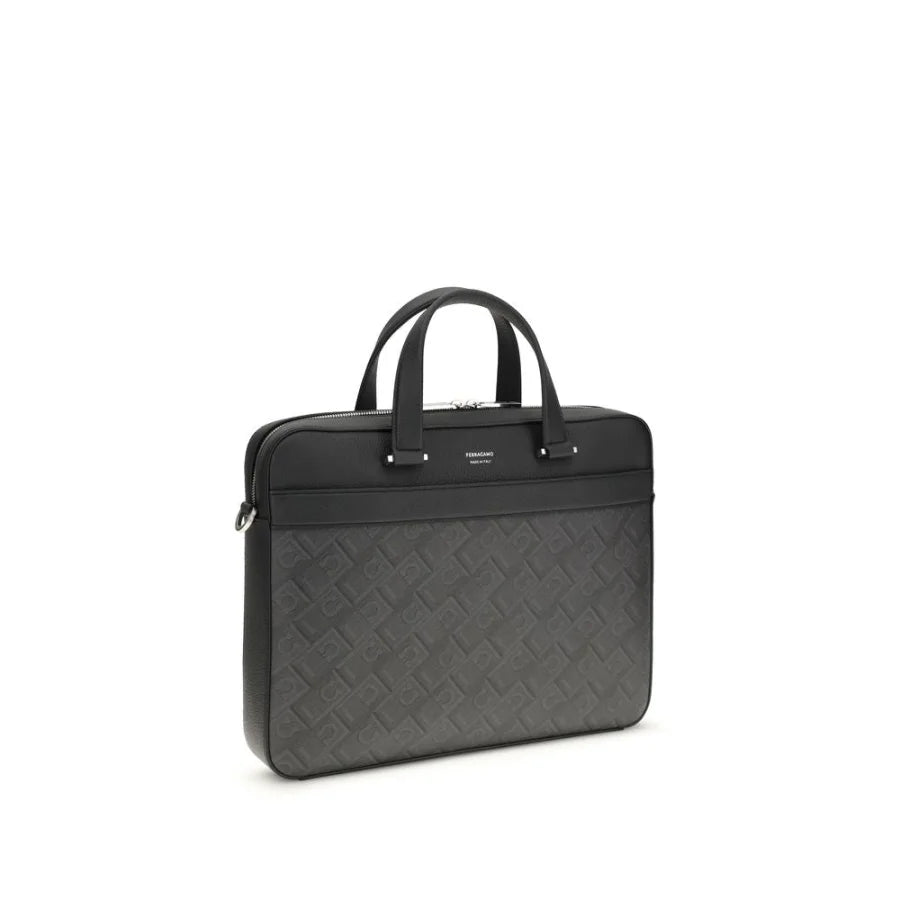 Ferragamo Gray Calf Leather Bos Taurus Briefcase
