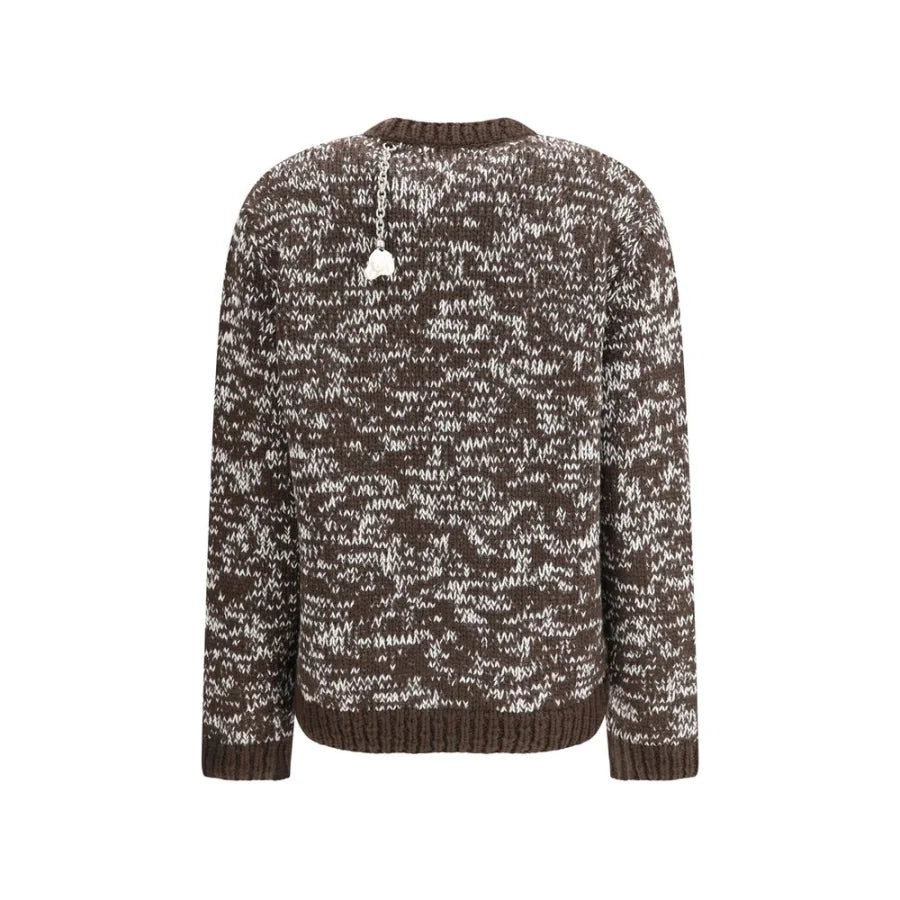 The charm-embellishment Sweater by Prada blends knitwear tradition with a contemporary, distinctive touch. Featuring a speckled pattern, this piece is designed with a classic crew neck, long sleeves, and ribbed trims. Decorative charm embellishments elevate the design, adding a refined and unexpected detail that embodies the brand’s sophisticated elegance.