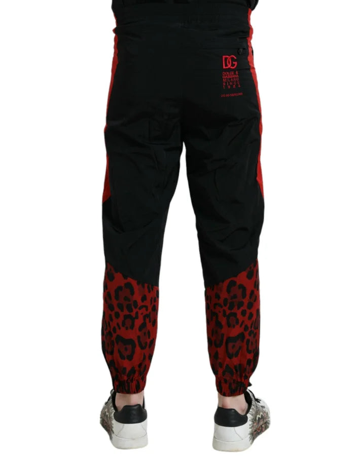 Dolce & Gabbana Black Red Leopard Print Nylon Jogger Pants