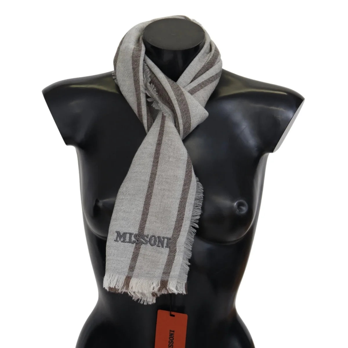 Descubre la esencia del lujo y el estilo con esta bufanda de lana Missoni . Con un llamativo estampado de rayas multicolor y el icónico logotipo de la marca bordado, esta bufanda es un testimonio perfecto de la artesanía italiana. Elegantemente diseñada con flecos que le dan un toque de estilo, su pura lana garantiza calidez y comodidad en cualquier clima. De diseño unisex, complementa a la perfección el vestuario de cualquier persona.
