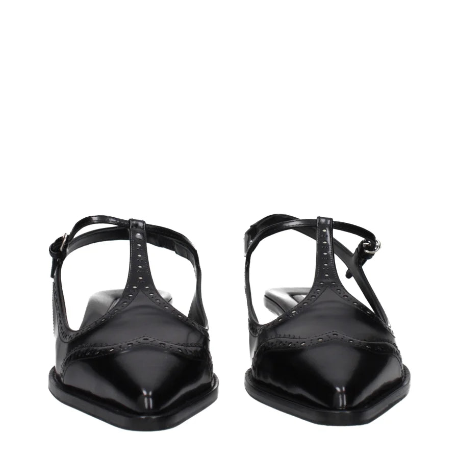 The product with MPN 5I309E055035F057Z and code F85403 leather in black is a sandals designed by Miu Miu. It has features like vintage effect.