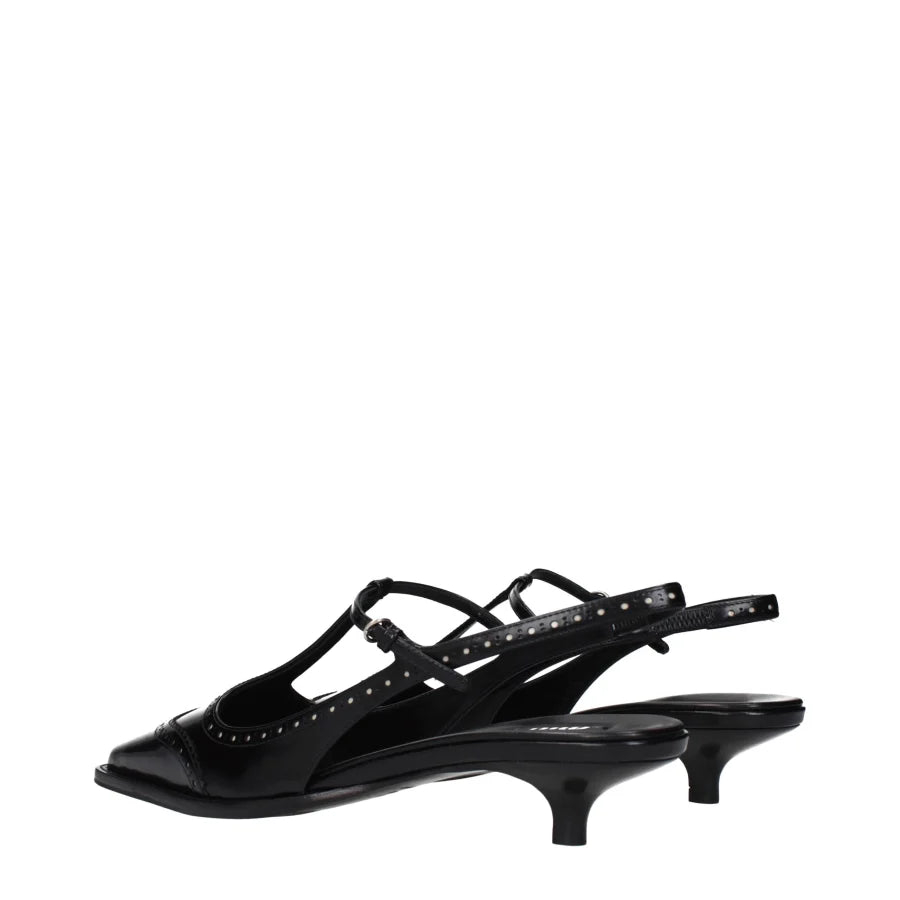 Miu Miu Black Leather Mid Heel Pumps