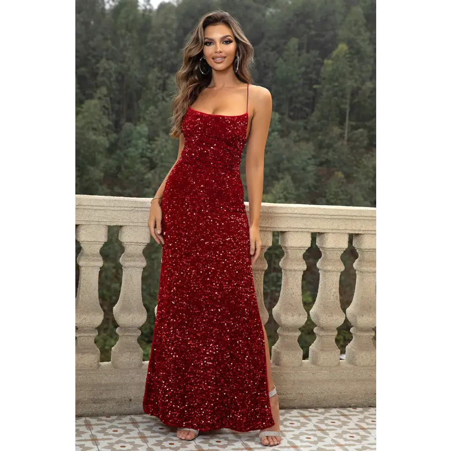Importado con sumo cuidado, este vestido está elaborado meticulosamente para superar tus expectativas y ser el centro de atención en cualquier evento. Ya sea una velada glamurosa, una cita romántica o una celebración especial, el vestido largo de lentejuelas con espalda descubierta y abertura será tu prenda favorita.