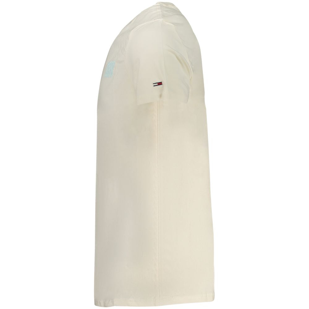 Define your off-duty look with a touch of classic yet contemporary flair, courtesy of Tommy Hilfiger. This sleek beige T-shirt, crafted from 95% regenerative cotton, exemplifies effortless style with its short sleeves and crew neck cut. The bold print and iconic logo add a signature touch to your casual repertoire. Perfect for making a sustainable fashion statement wherever you go.