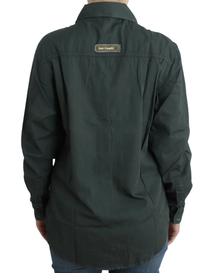 Chemise boutonnée élégante en coton gris Cavalli
