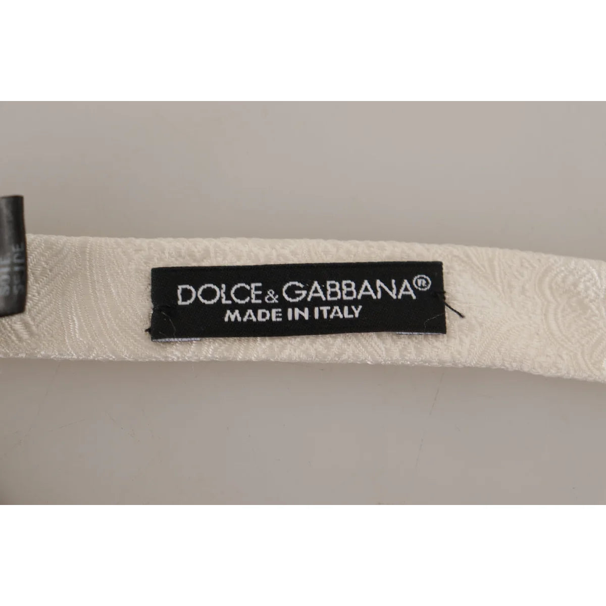 Dolce & Gabbana White 100% Silk Slim Adjustable Neck Papillon Tie