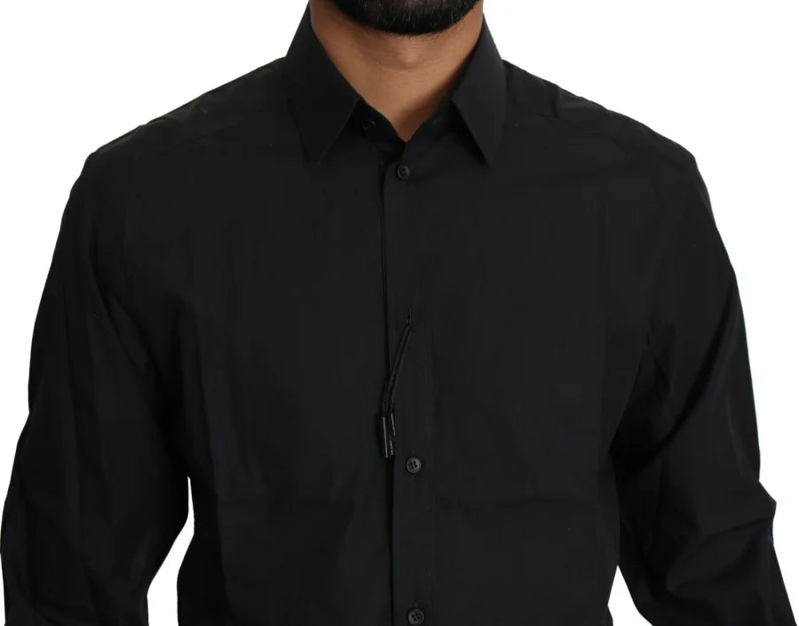 Dolce & Gabbana Black Cotton Formal Dress Men Top Shirt