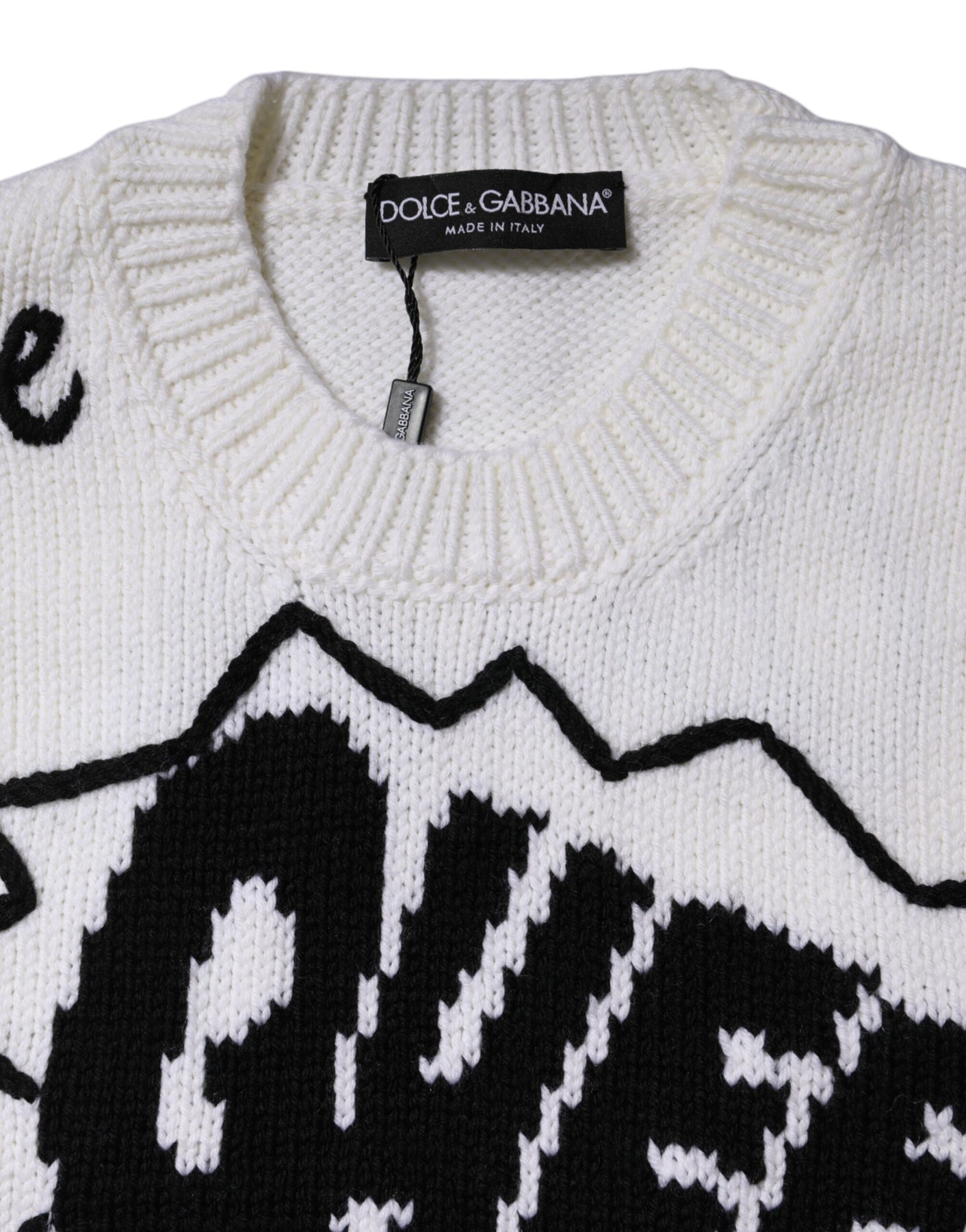 Dolce & Gabbana White Wool Knit Crew Neck Pullover Sweater
