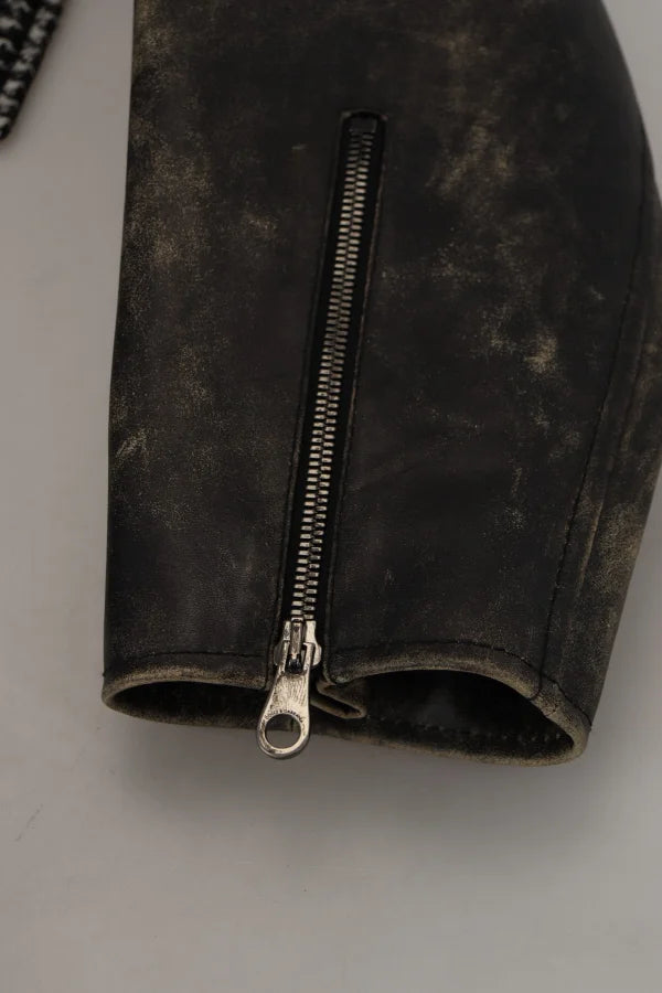 Blouson aviateur en cuir pied-de-poule multicolore Dolce & Gabbana