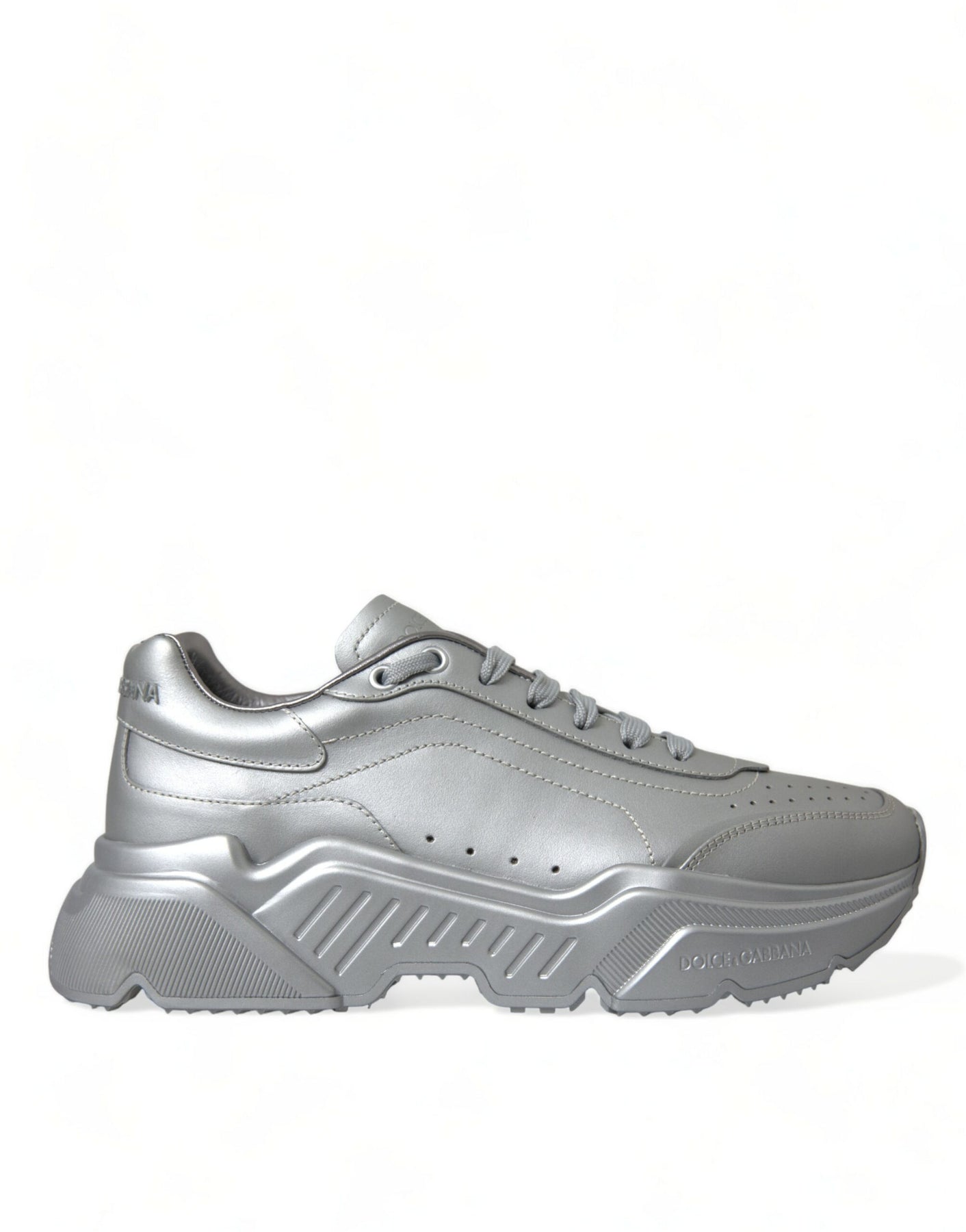 Baskets élégantes en cuir de veau argenté Dolce & Gabbana