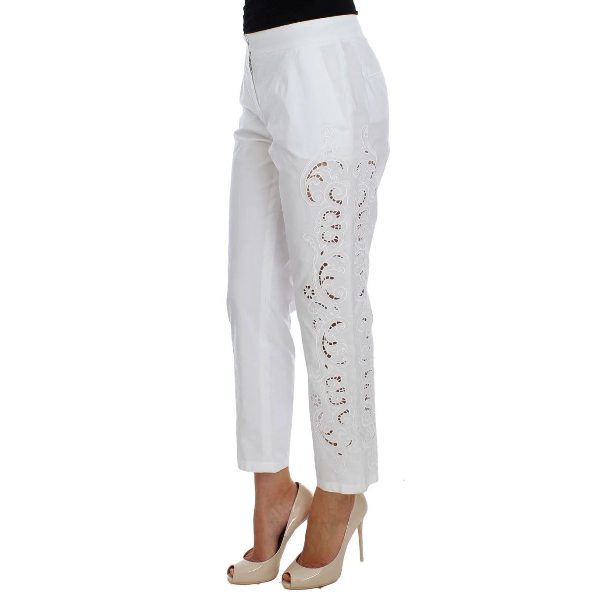 Pantalon habillé élégant à découpes florales blanches Dolce & Gabbana