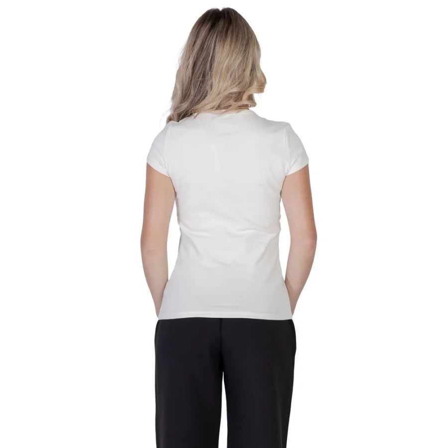 Discover the Guess Active KIARA SS V4BI16 KCIV1 short-sleeve t-shirt for women, crafted from a high-quality blend of 94% cotton and 6% elastane/lycra. This t-shirt is designed to provide comfort and style, making it perfect for your everyday activities. The embossed Guess logo adds a touch of elegance and modernity. With its fitted cut, it perfectly hugs the body, enhancing your silhouette. Pair it with your favorite pants for a casual and trendy look.