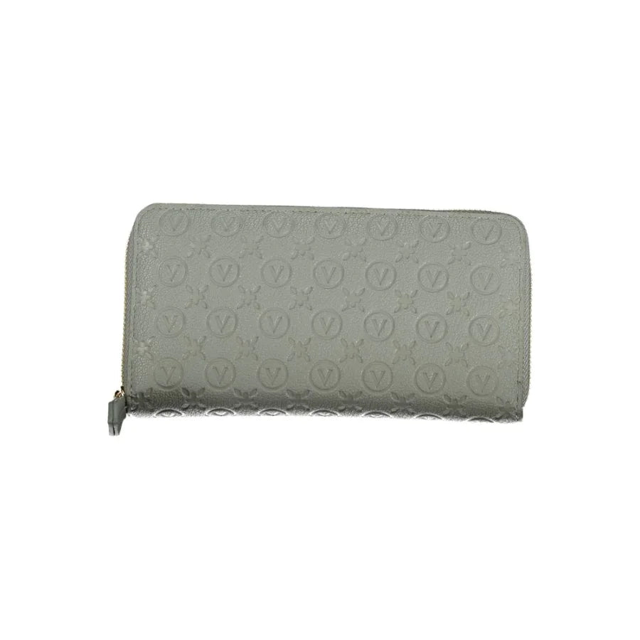 Elevate your accessory game with the VALENTINO BAGS wallet, a masterpiece of organization and style. Featuring a six-compartment interior, this essential offers ample space for your cards and coins, secured by a sleek zip closure. Bold contrasting details and the unmistakable VALENTINO logo exude luxury, while the chic Grigio shade commands attention. Crafted from durable Poliuretano, it’s an investment in both fashion and function.