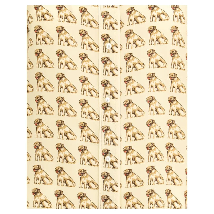 The silk crepe de chine Shirt by Valentino is enhanced by a Petit Charles print. The fluid design is embellished with a pearl front closure, a detail also echoed on the cuffs.