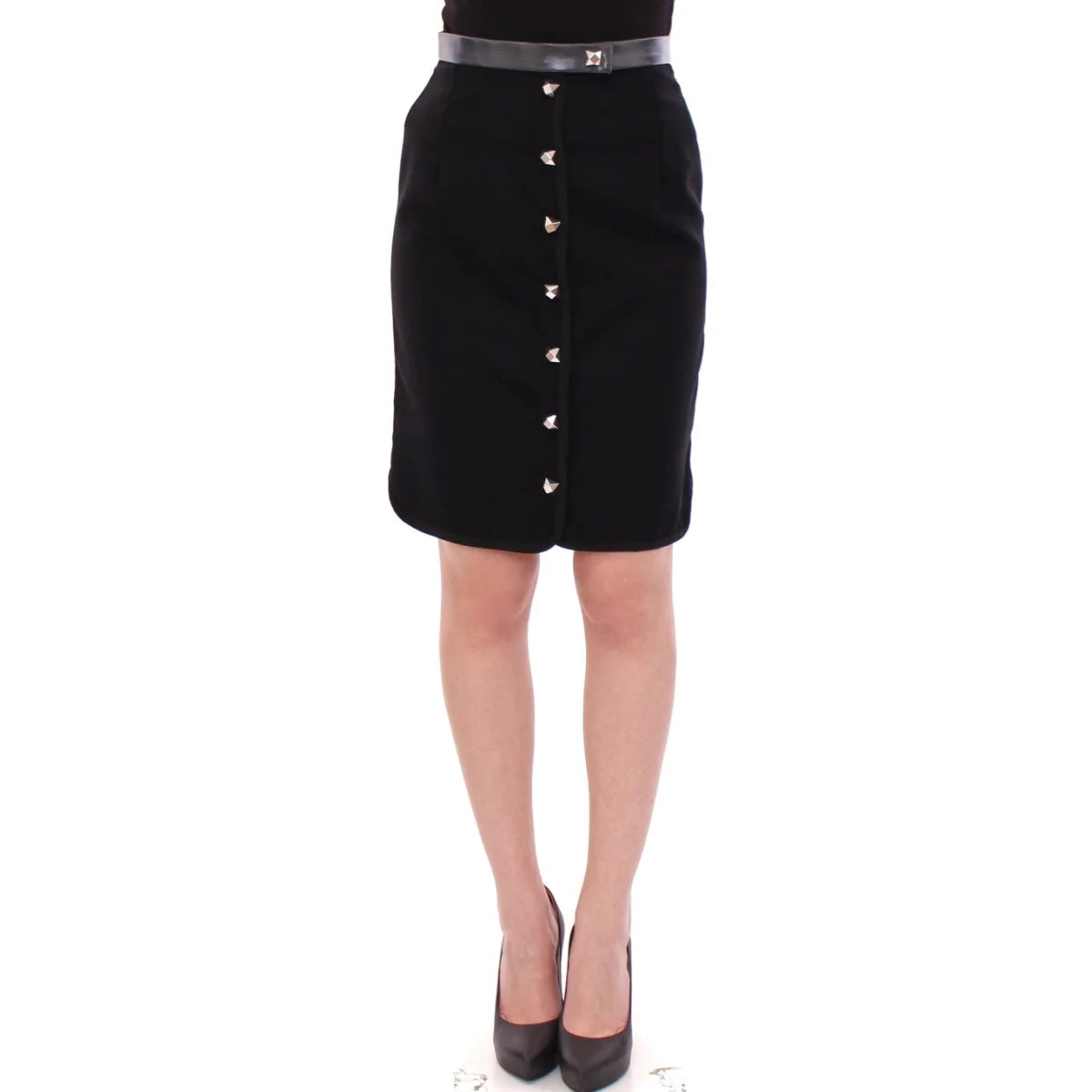 Corrado De Biase Black Metal Buttons Cotto Wool Skirt