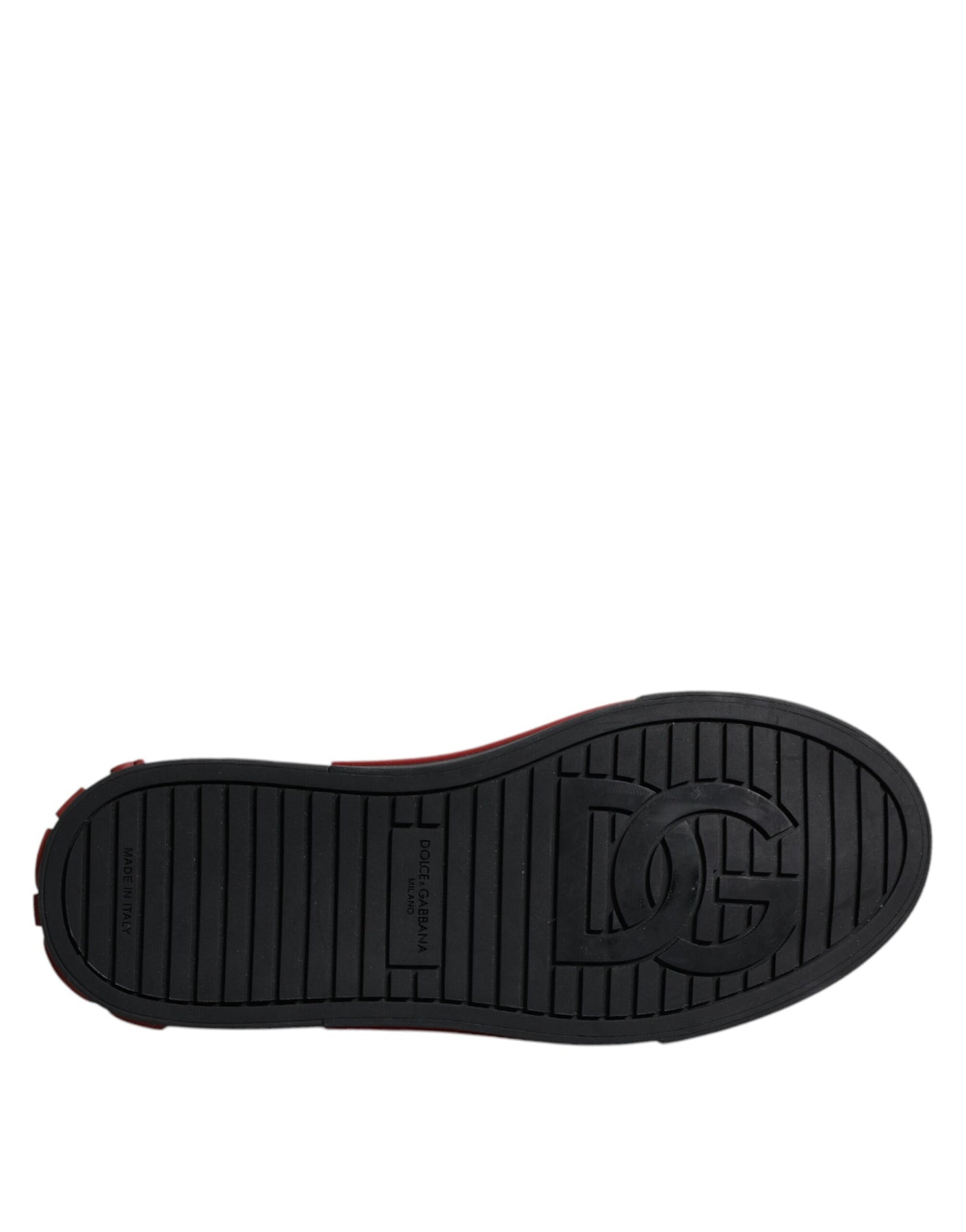 Dolce & Gabbana Red Black Leopard Cotton Men Low Top Sneakers Shoes