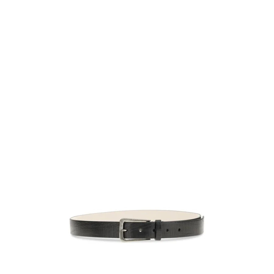 The carved leather Belt with Shimmering Buckle by Brunello Cucinellistands out for its irregular and slightly shiny effect, which gives the leather an original and refined look. The hand-carved detailing enriches the design, while the buckle, crafted using a unique artisanal technique, amplifies the shiny effect of the metal, creating an elegant and refined contrast. An accessory that combines craftsmanship and style, ideal for adding an exclusive touch to any look.