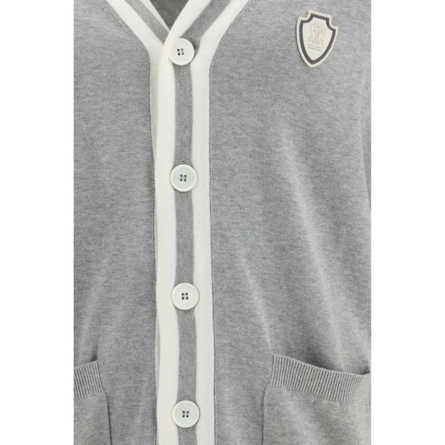 The V-neck cotton Cardigan by Brunello Cucinelli with front pockets is an iconic piece that combines elegance and practicality. It features a v-neck on the front, button closure and two welt patch pockets. The unmistakable monogram patch is applied on the chest, adding a distinctive touch. Ribbed cuffs and hem complete the design for a comfortable, finished fit.