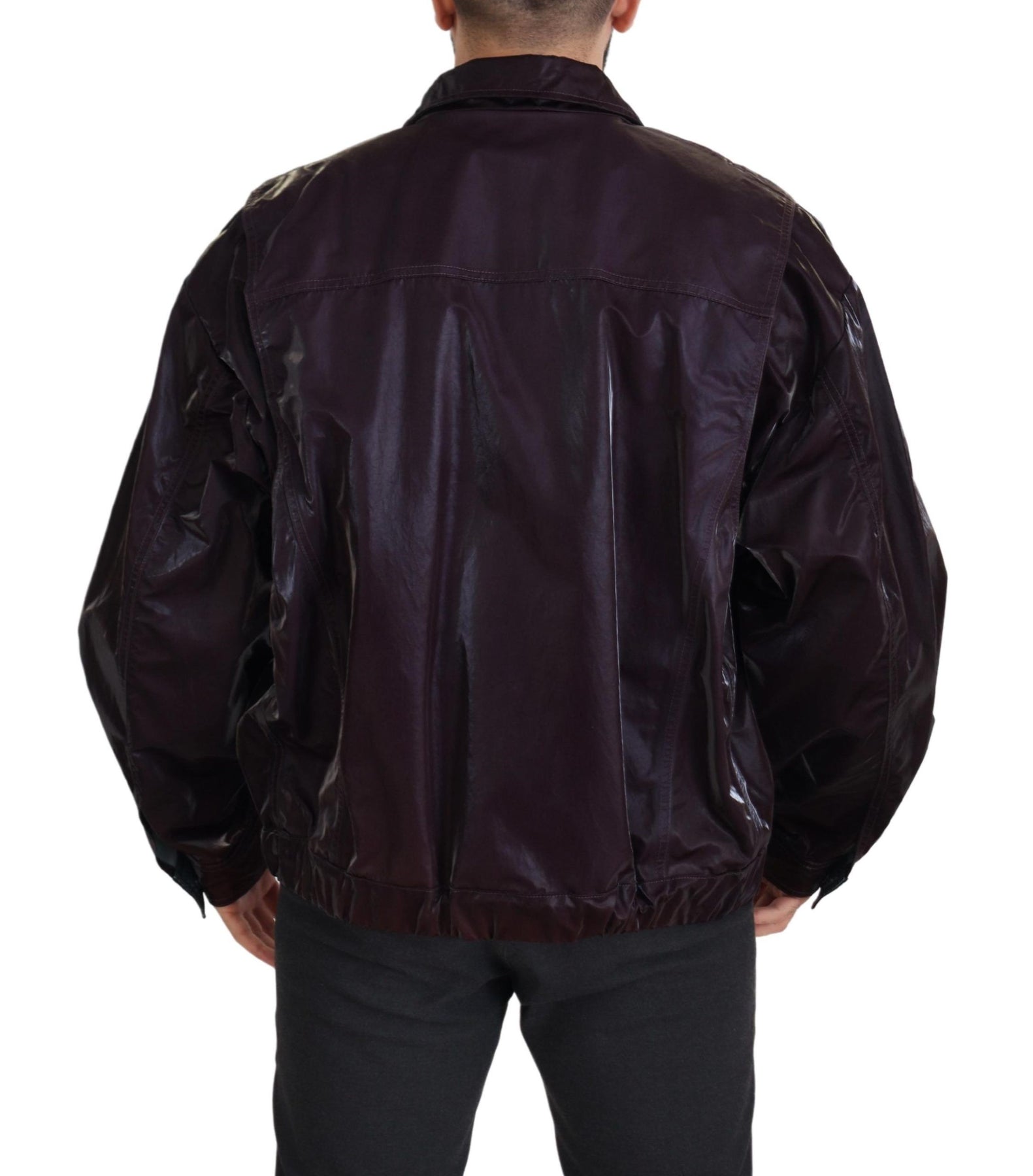 Dolce & Gabbana Bordeaux Nylon Collared Men Coat Jacket