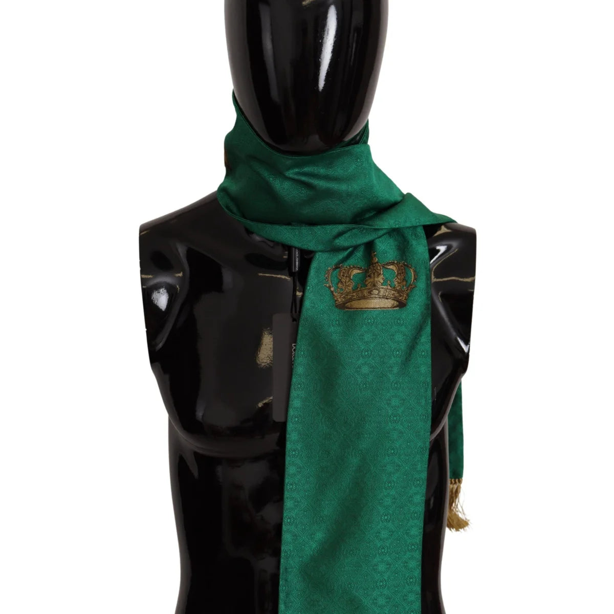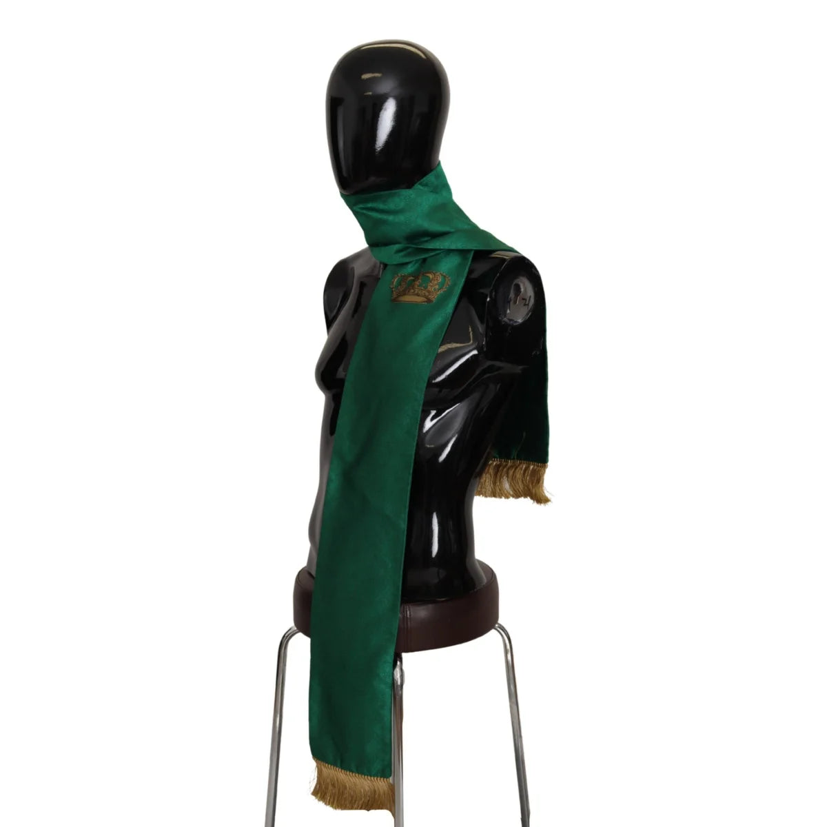 Dolce & Gabbana Green Crown Embroidered Shawl Fringe Blend Silk