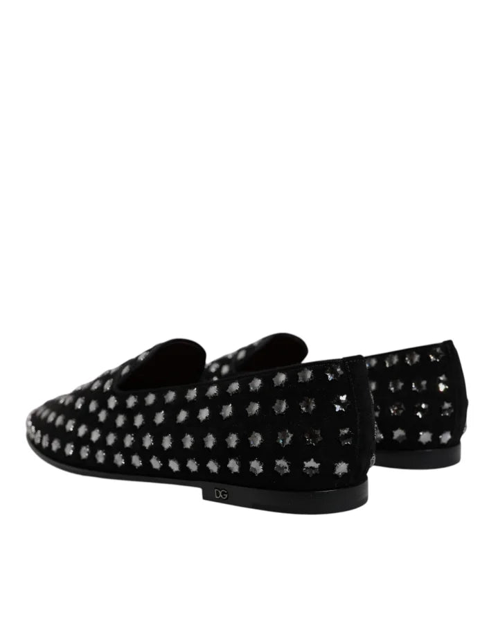 Dolce & Gabbana Black Crystal Embellished Loafers Dress Shoes