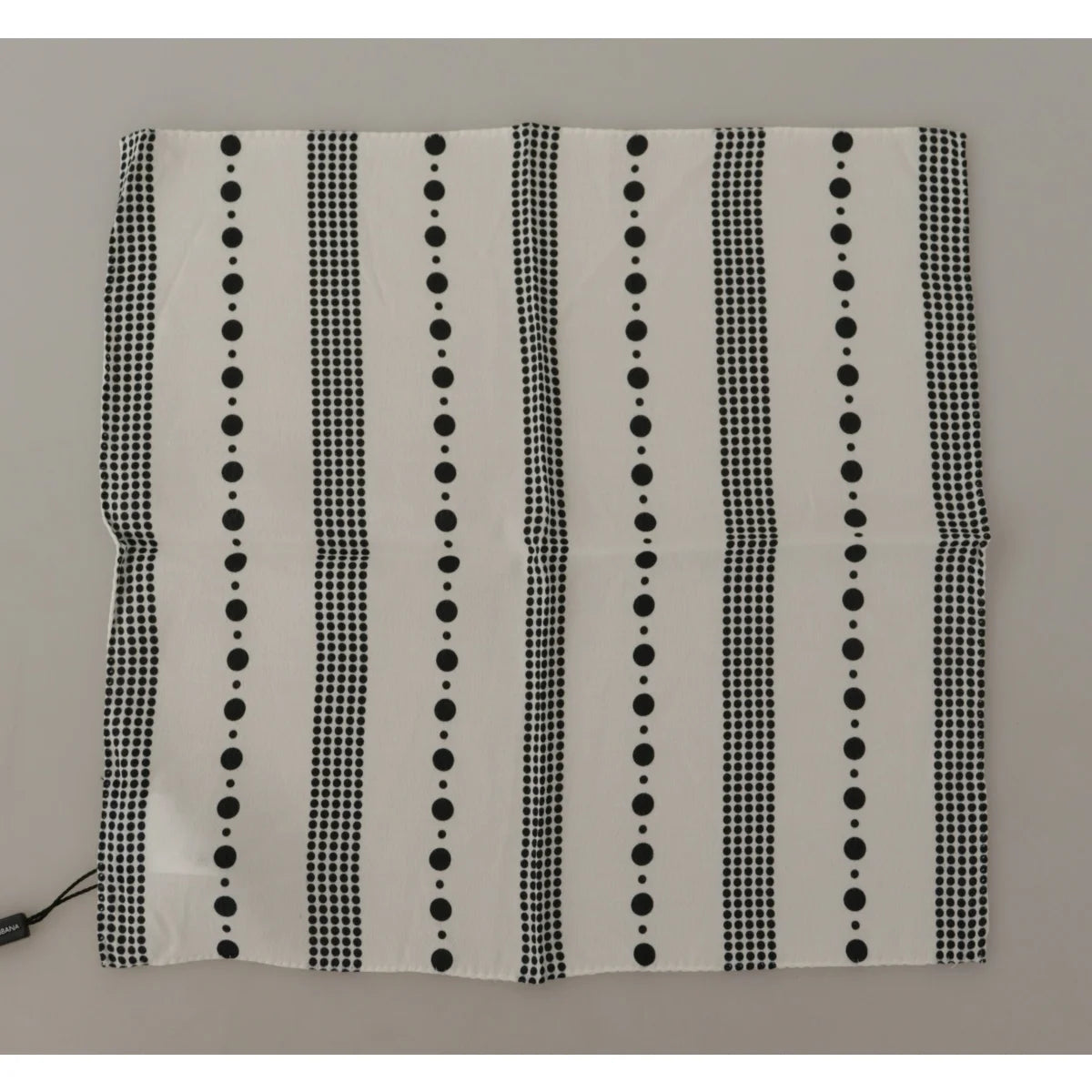 Dolce & Gabbana White Dotted Stripes Square Handkerchief Viscose Scarf