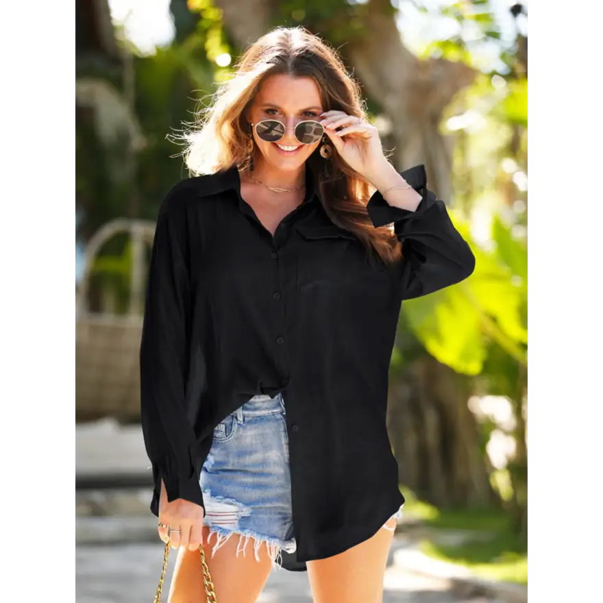 Discover the Chic Comfort of Our Pocketed Buttons: Dropped Shoulder Top!