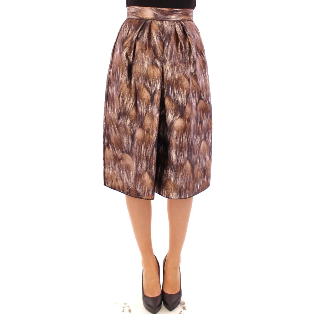 Dolce & Gabbana Brown Floral Silk Straight Full Skirt