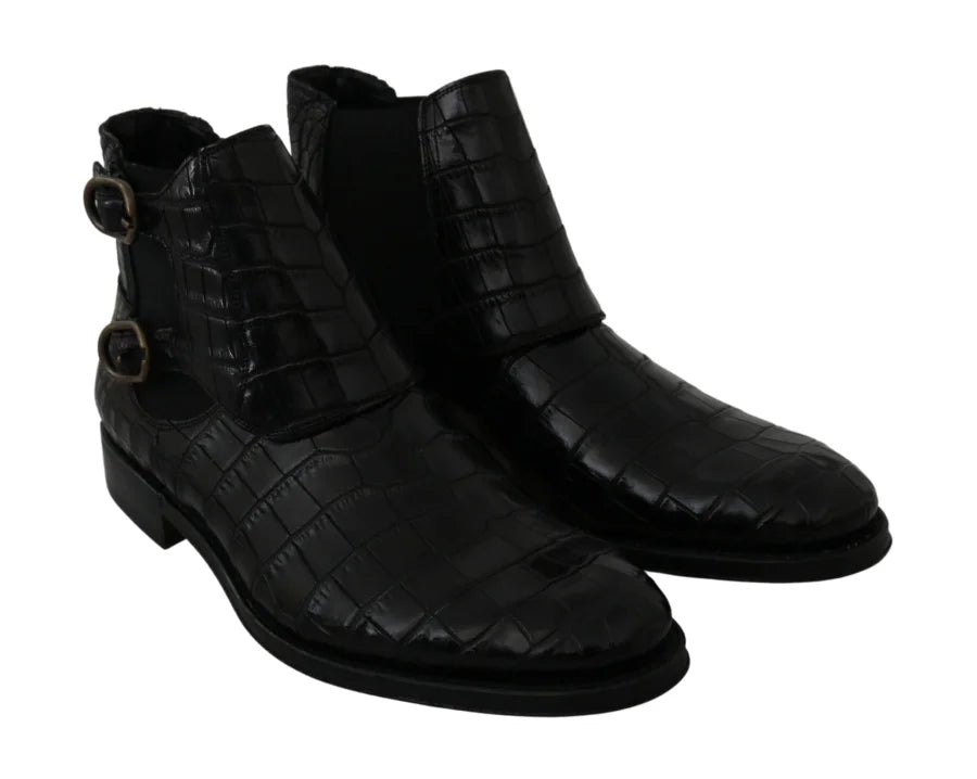 Dolce & Gabbana Black Crocodile Leather Derby Boots Shoes