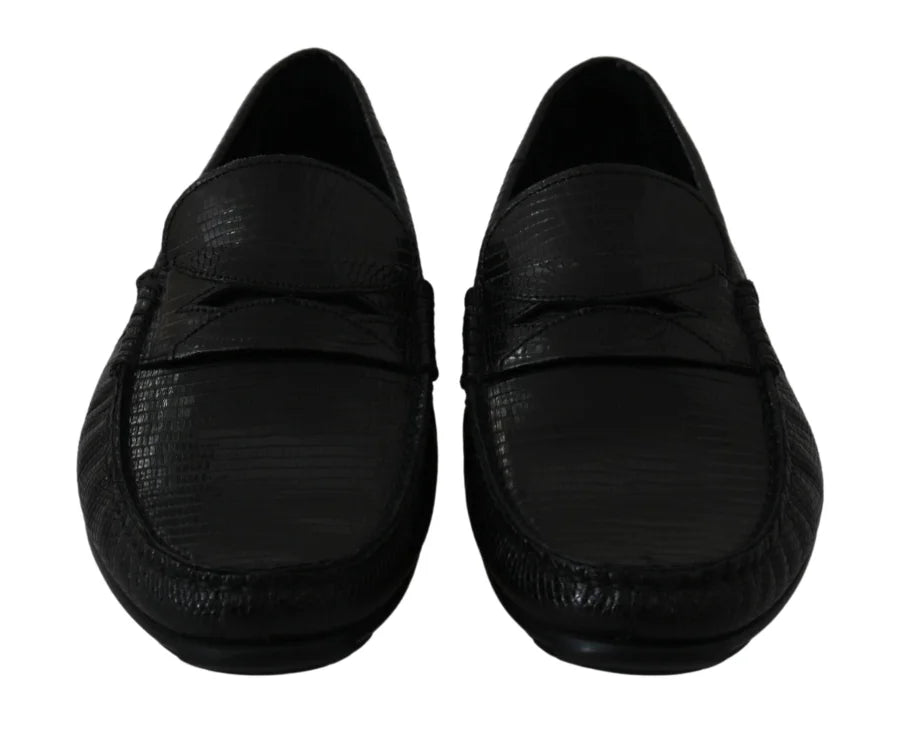 Dolce & Gabbana Black Lizard Leather Flat Loafers Shoes
