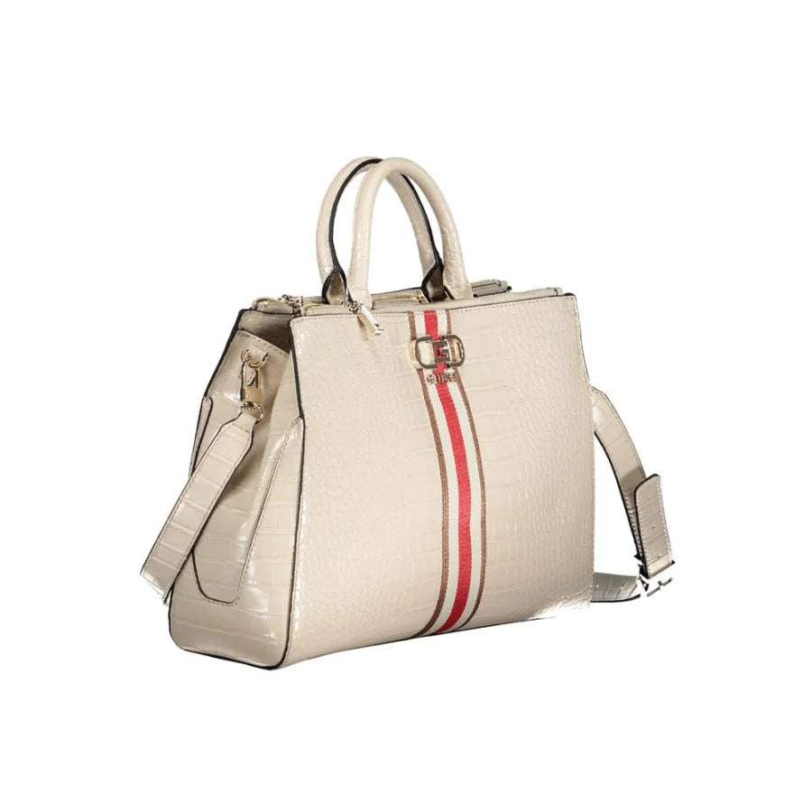 Dare to dazzle with the GUESS JEANS Nelka Bag, a true emblem of chic practicality. Featuring two sleek handles and an optional adjustable shoulder strap for versatility. Its beige hue is accentuated with contrasting details, and with three spacious compartments, an external pocket, and an internal pocket, there’s a spot for everything. The protective feet ensure your bag stays pristine, no matter where you place it. Completed by the unmistakable GUESS logo for that touch of luxury.