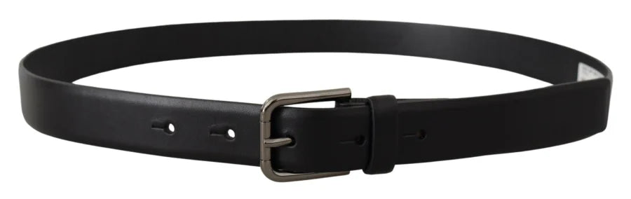 Dolce & Gabbana Black Calf Leather Classic Logo Metal Buckle Belt