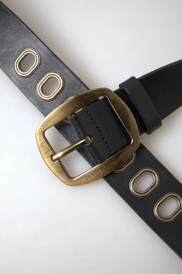 Dolce & Gabbana Black Leather Gold Metal Buckle Men Belt