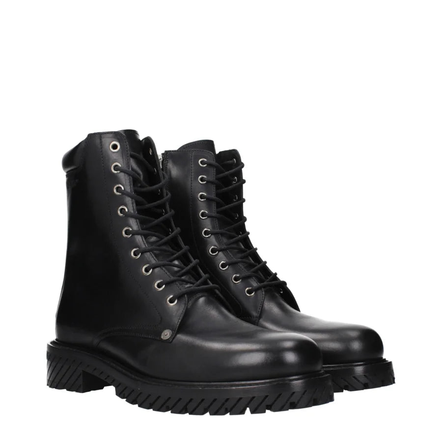 Off-White Black Leather Ankle Boots