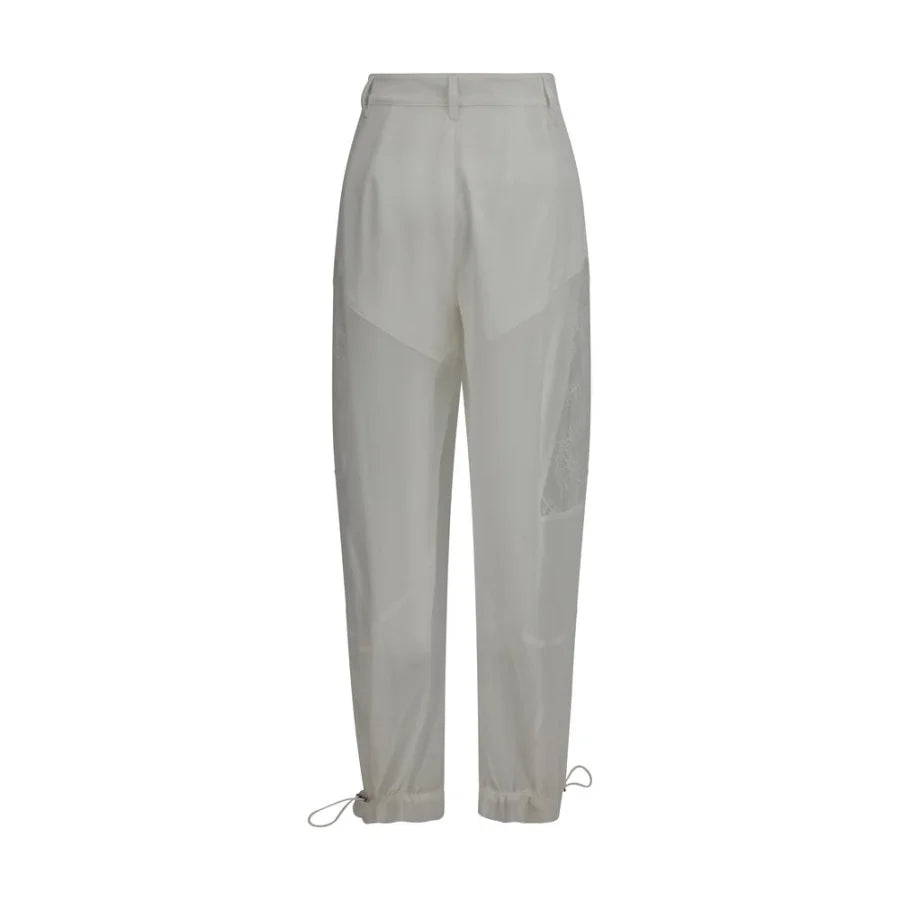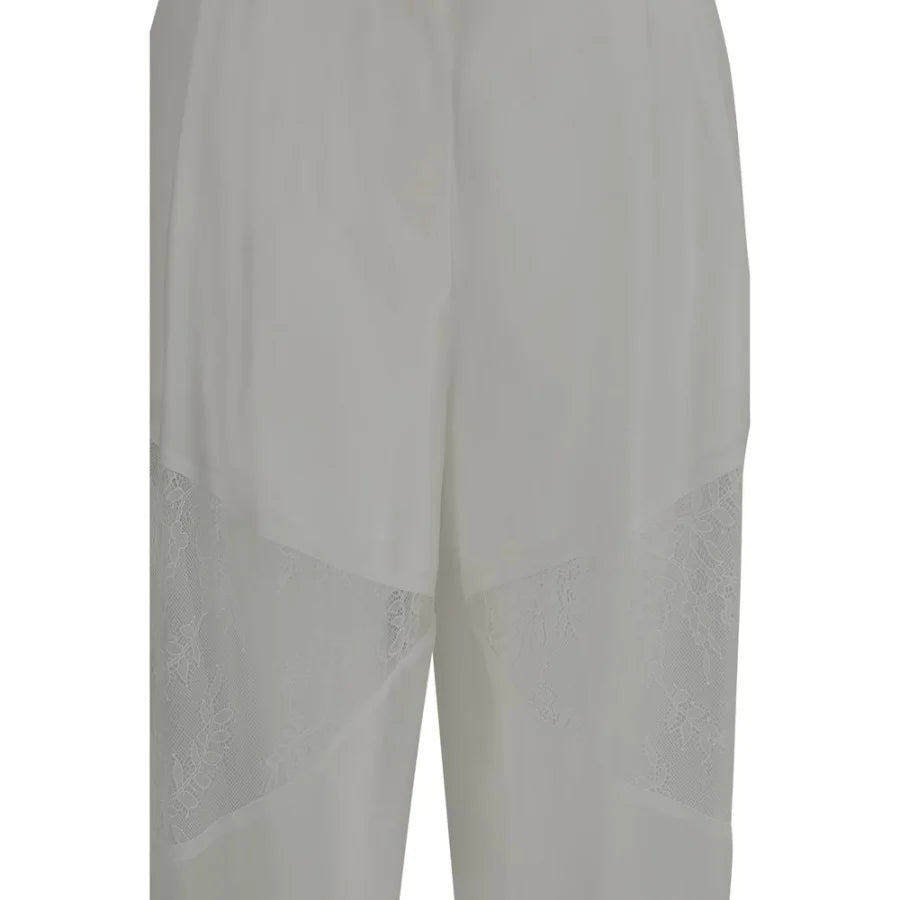 The Nacy Pants with lace inserts by PINKO embody a refined balance between tailored structure and contemporary femininity. Designed with front darts that define the silhouette, the style stands out for its lace inserts, adding a sophisticated touch while keeping the overall look clean. The concealed button and zip closure ensures a streamlined finish, while the front pockets and embroidered logo on the back introduce subtle brand identity. Belt loops and a drawstring at the hem allow for adjustable styling, and the elasticated hem enhances comfort and versatility, making the trousers suitable for polished everyday outfits as well as more elevated looks.