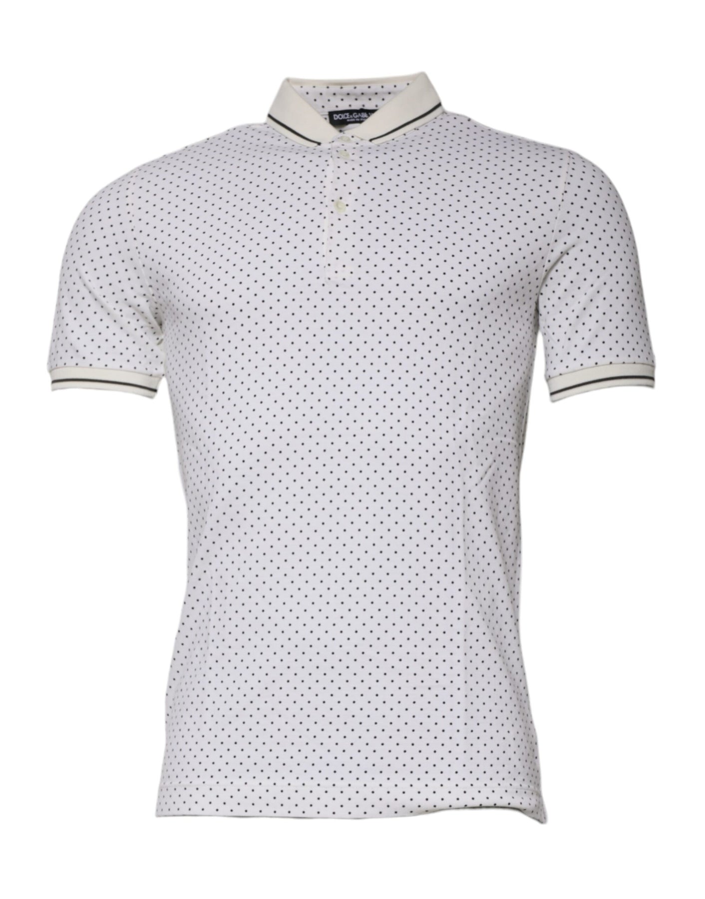 Dolce & Gabbana White Polka Dot Cotton Collared Polo T-shirt