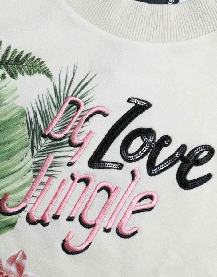 Dolce & Gabbana Beige Jungle Printed Cotton Pullover Sweater