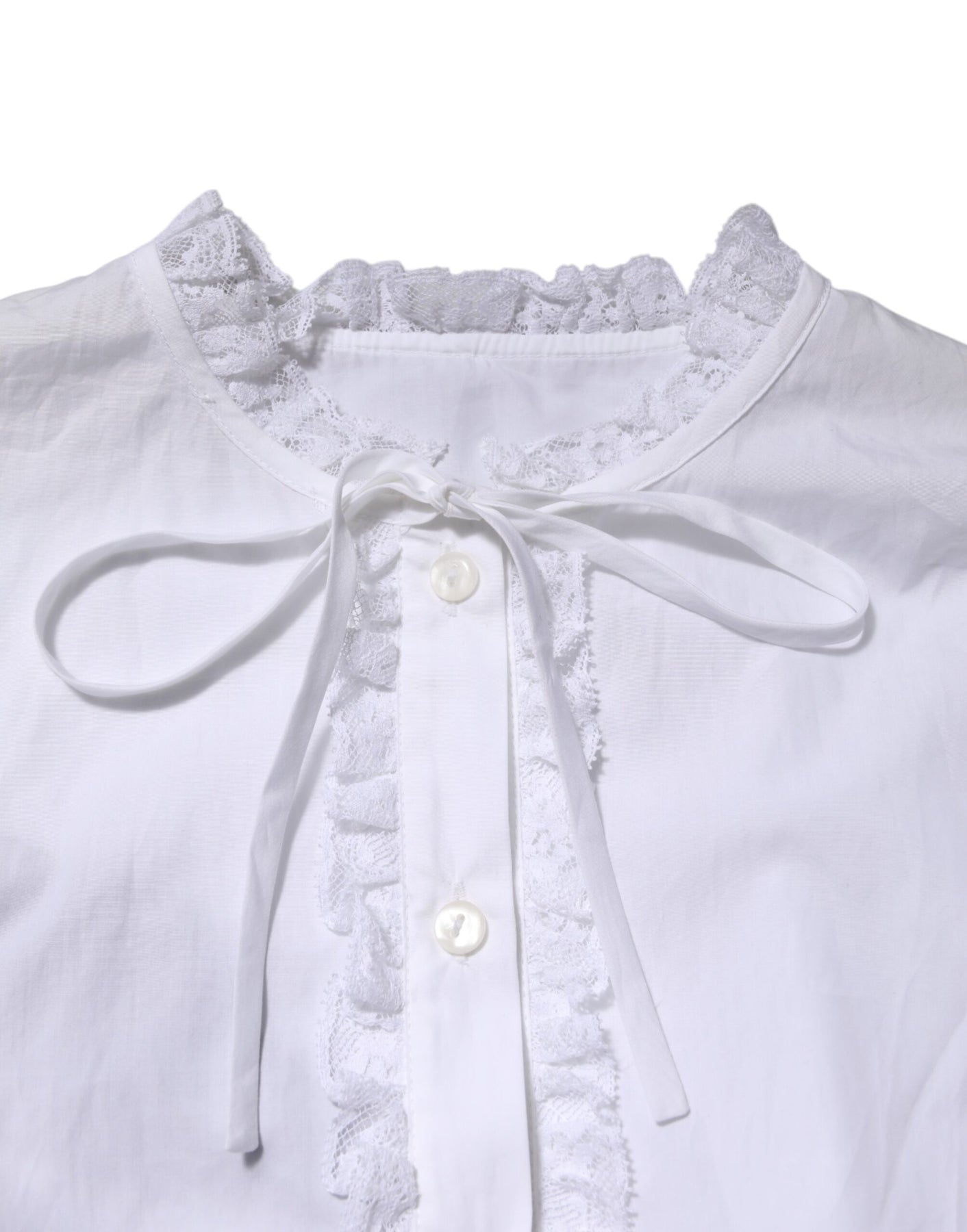 Dolce & Gabbana White Ruffled Lace Embellished Blouse Top