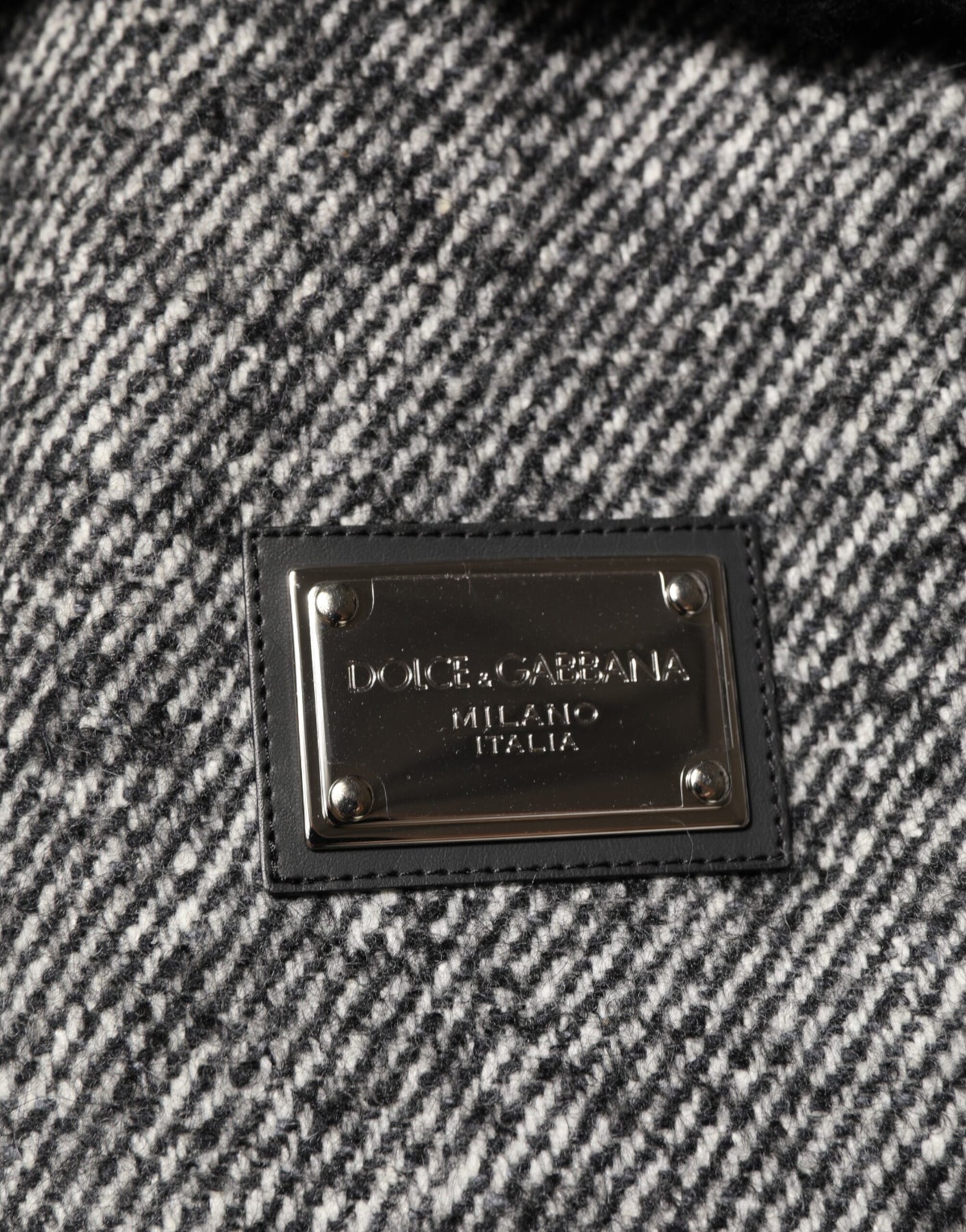 Dolce & Gabbana Gray Wool Herringbone Shearling Collar Bomber Jacket