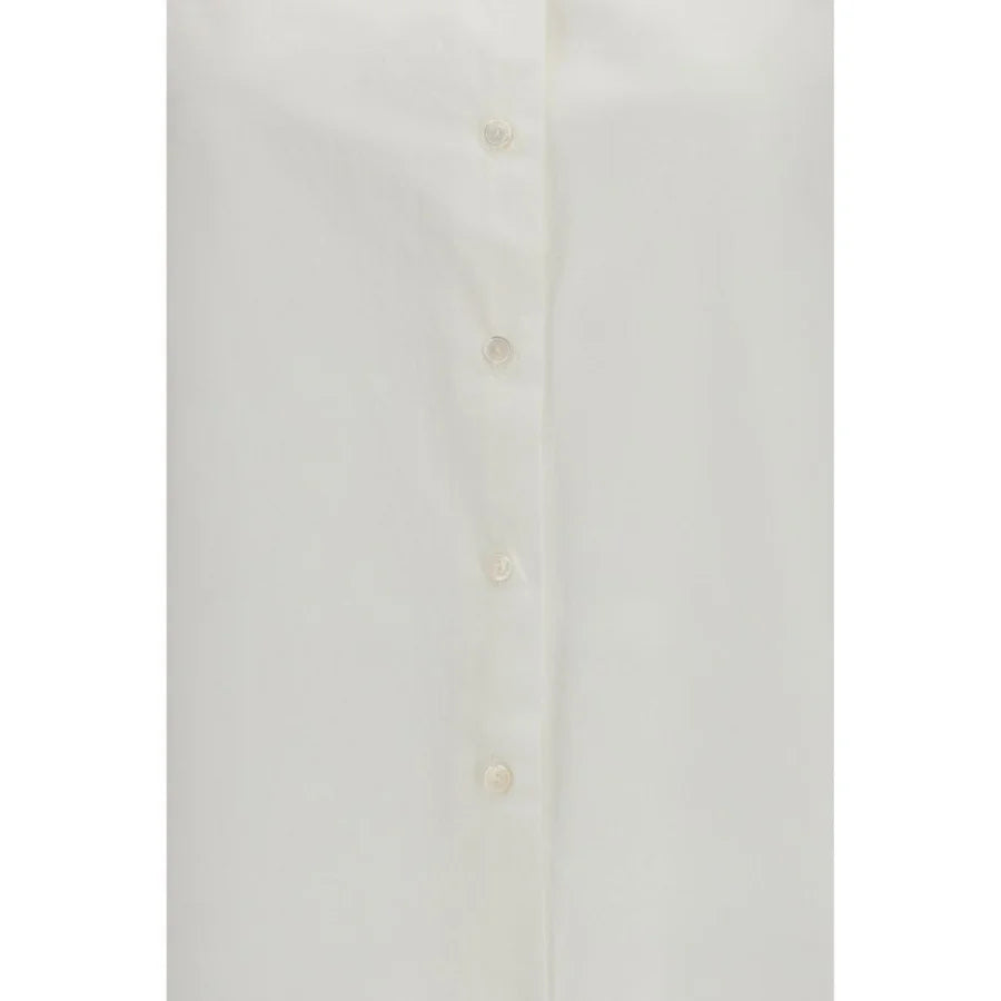 The Sadie Shirt by The Row is a slim-fitting, elegant garment made from lightweight organic cotton poplin. The front placket with visible buttonhole and buttons, together with the subtle back yoke, discreetly enhances the body’s silhouette. The fabric, finished with an ancient Japanese dyeing technique, has a delicately crinkled texture and a naturally soft feel, giving the shirt a sophisticated elegance and exclusive quality, perfect for minimalist and refined looks.